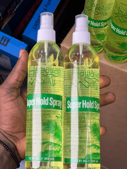Hawaiian Silky Super Hold Spritz is a high-strength finishing spray designed for long-lasting,, firm-hold styling, providing shine while resisting humidity. It works instantly to lock in hairstyles like braids and weaves, featuring a fast-drying formula that keeps hair styled without feeling excessively stiff